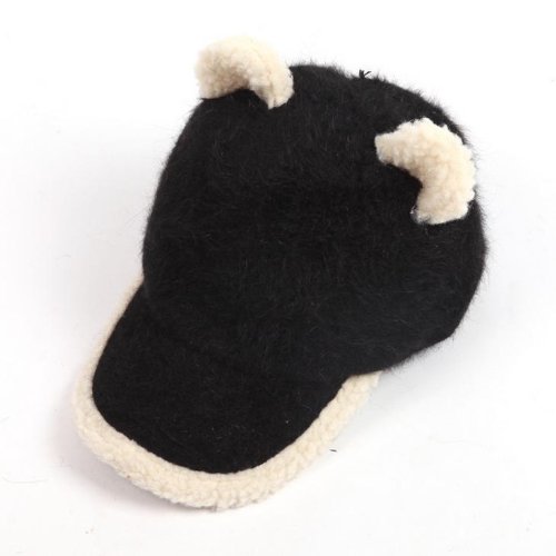 Aolevia Aimable Casquette Femme en Poil de Lapin - Casquette Hip-Hop en Forme de Chat - Casquette Baseball Idéal Pour Printemps,Automne,Hiver (Noir)