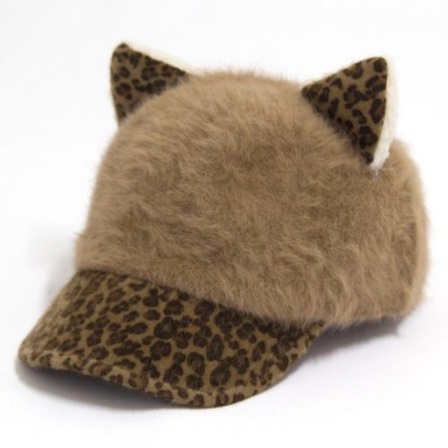 Aolevia Léopard Café Casquette Femme en Poil de Lapin - Casquette Aimable en Forme de Chat - Casquette Baseball Idéal Pour Printemps,Automne,Hiver