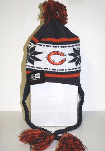 Chicago Bears New Era NFL Striped Snowflake Tassel Knit Hat Chapeau