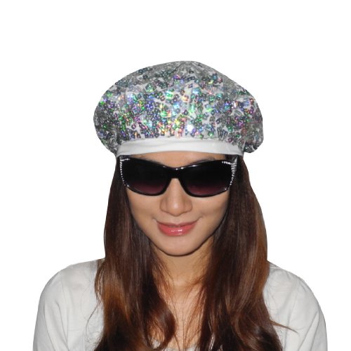 femmes Glitter Style Flashy étincelle Parti béret / chapeau avec paillettes Blanc