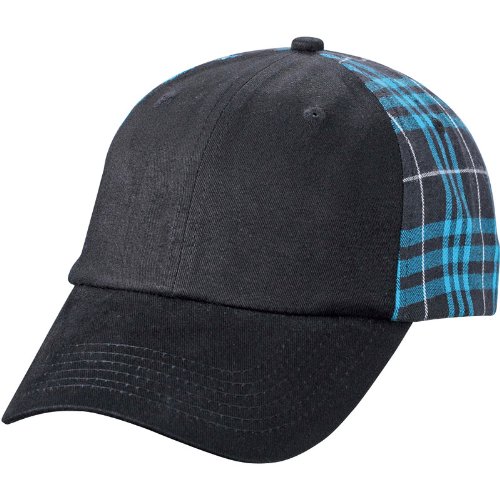 Casquette 6 panneaux avec motif carreaux écossais sur l'arrière - 6 oeillets - 6 surpiqûres sur la visière - Léger renforcement aux panneaux frontaux - Fermeture réglable par velcro - Bande de transpiration doublée en satin - 100 % coton